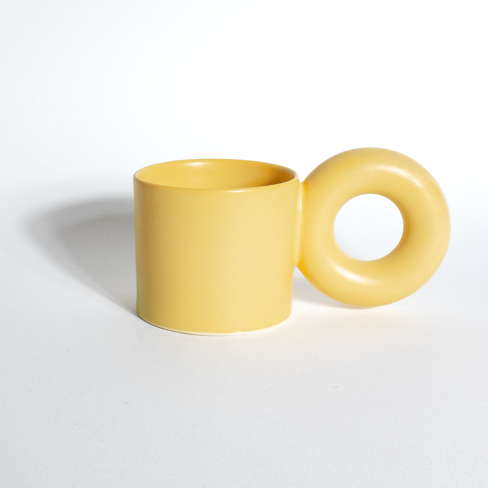 This mug with a donut handle is so great for morning coffee, and feels amazing to hold in the hand. 100% handmade and slipcast.