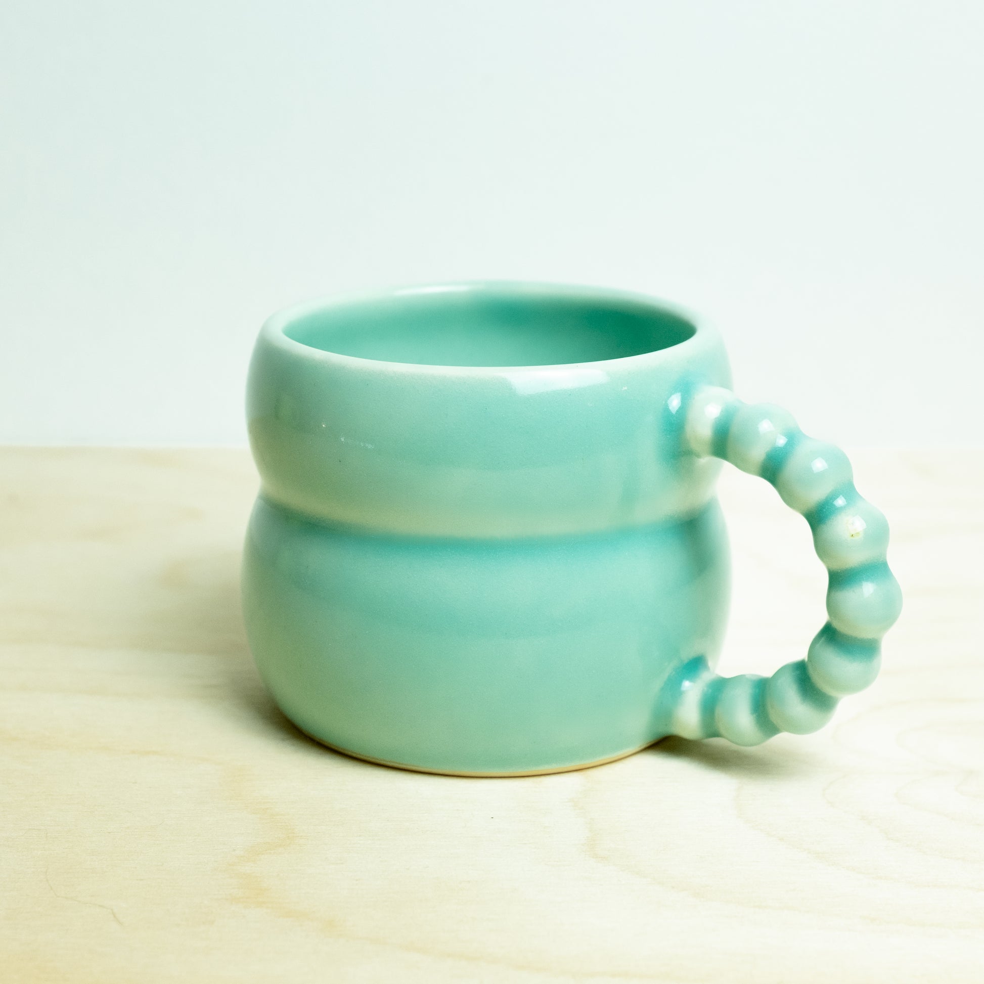This mug with a pearl handle is so great for morning coffee, and feels amazing to hold in the hand. 100% handmade and slipcast.