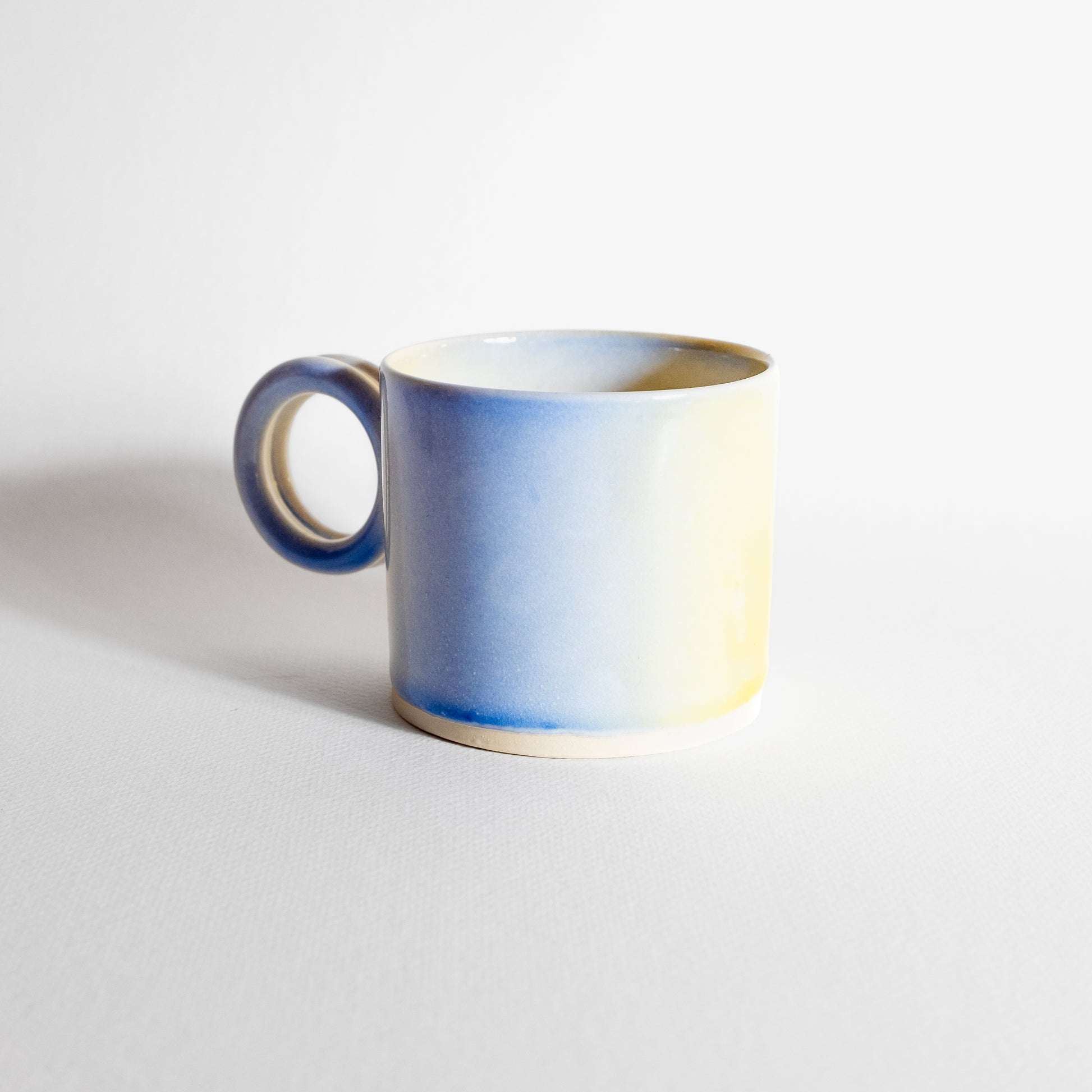This simple cup with a round handle is so great for morning coffee, and feels amazing to hold in the hand. 100% handmade and slipcast.