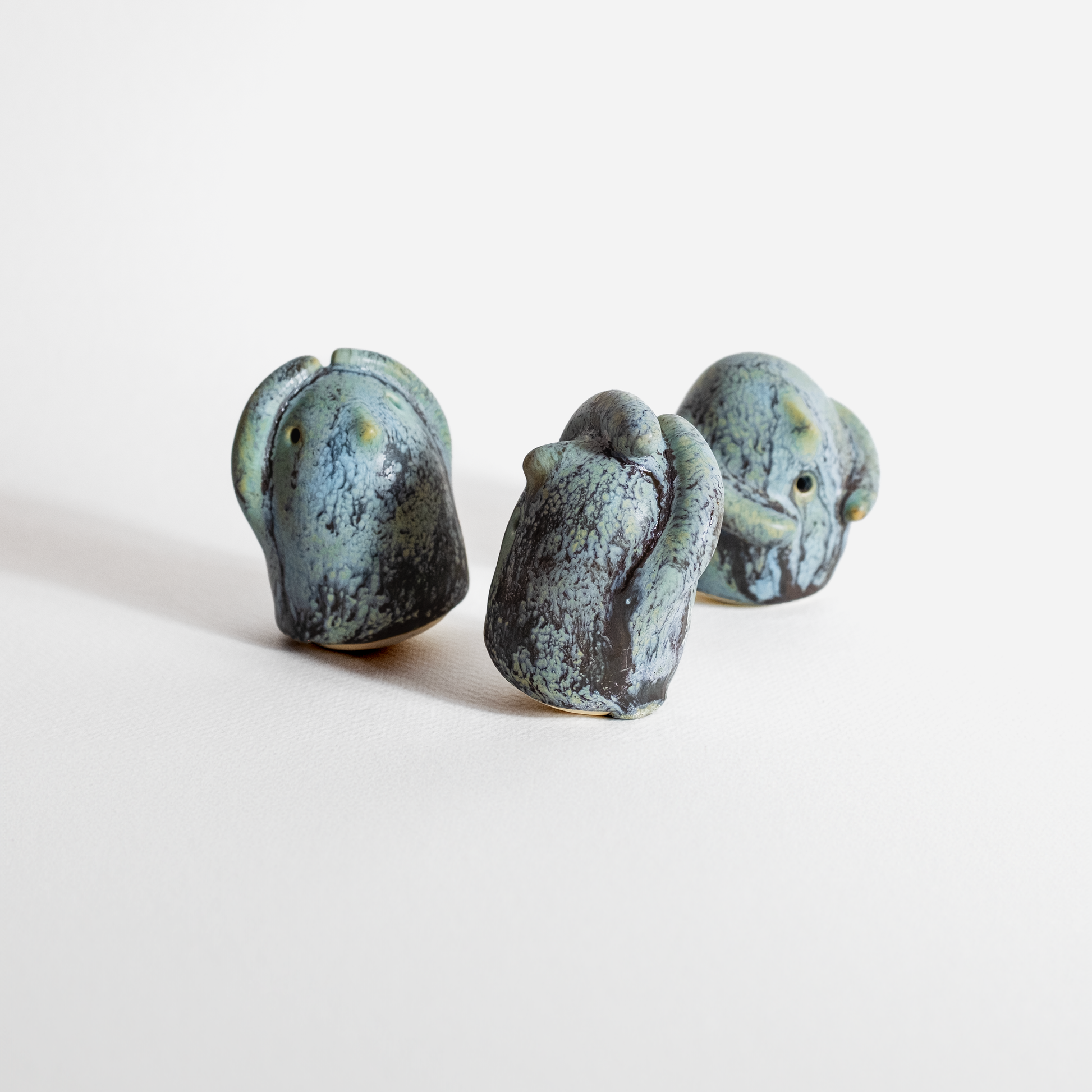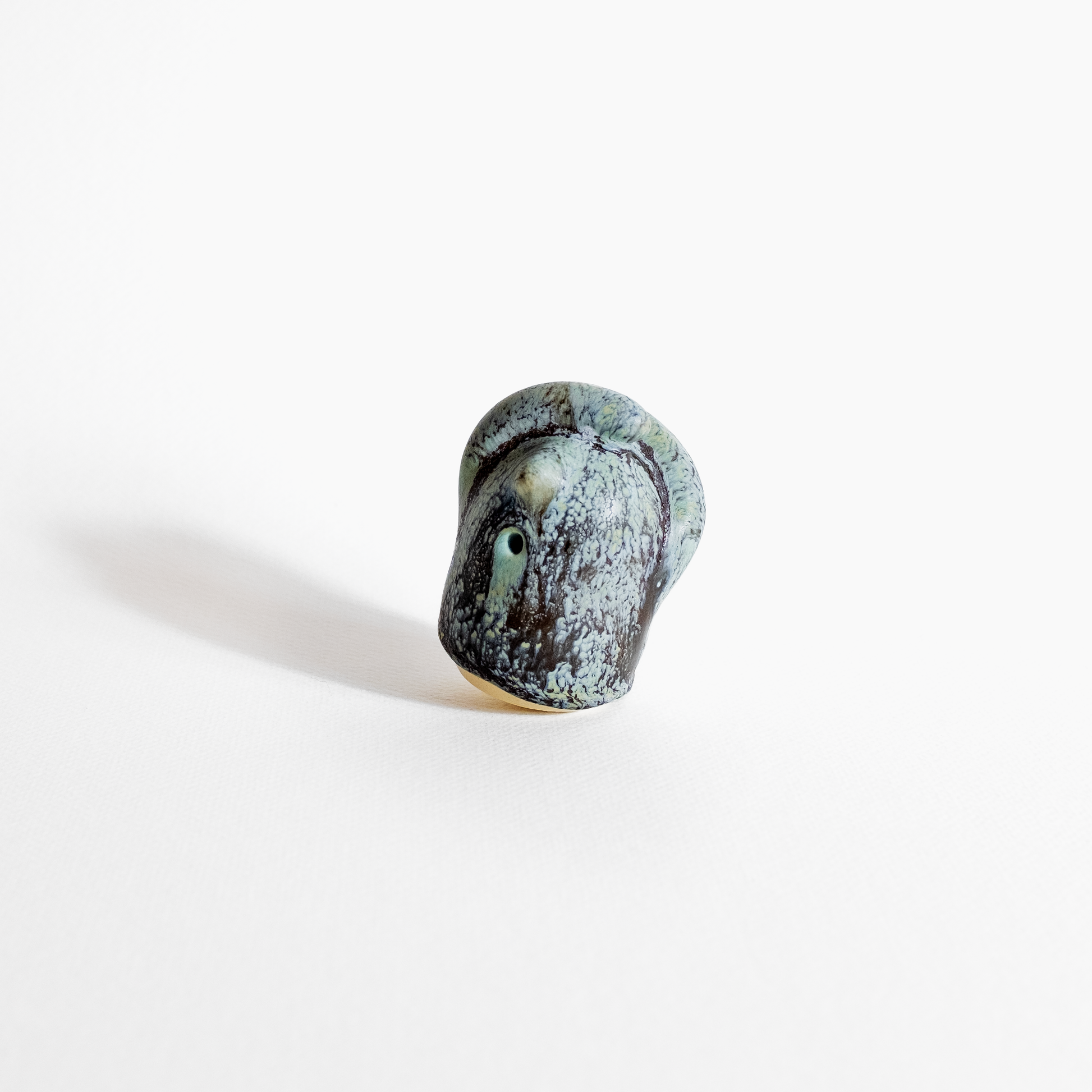 This little guy wobbles and rolls like no one is watching! Small figurine sculpture, perfect for a tiny home decoration piece. Glazed in a blue oil spot.